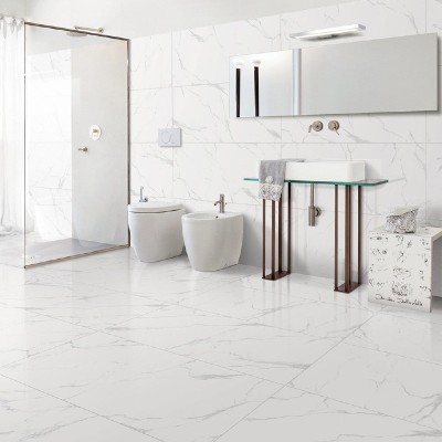 Granitne pločice velikog formata namenjene za podne i zidne površine u kuhinju, kupatilu ili sobi CLASSIC CARRARA 60x120. Ove granitne pločice su mermernog dizajna polirane (Full Lappato) površine.