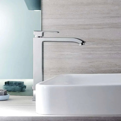 Visoka jednoručna baterija za lavabo modernog i elegantnog dizajna Level italijanskog proizvođača Paffoni. Baterija je namenjena za nadgradne lavaboe i ugrađuje se na radnu ploču sa jednim otvorom.