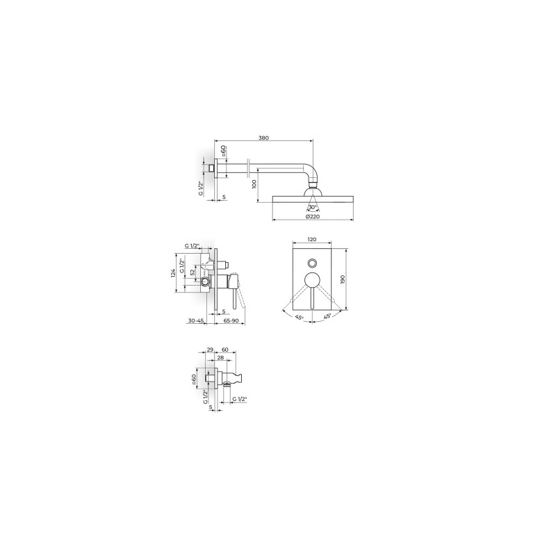 Baterija uzidna za tuš kadu sa uzidnim i ručnim tušem Rosan JZ31601