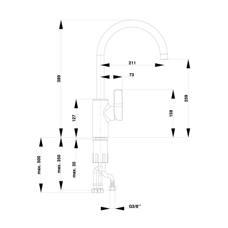 Herz Elite 01107 jednoručna kuhinjska baterija za sudoperu za električni prelivni bojler. Baterija Herz Elite se povezuje na 3 cevi koja se dobijaju uz bateriju.