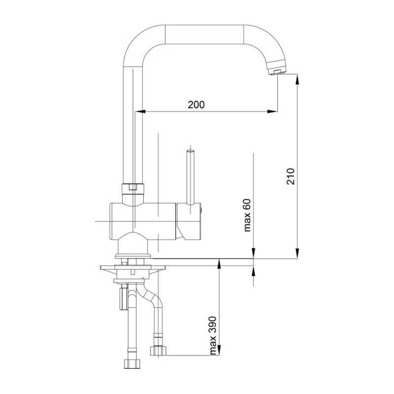 Herz Fresh 01144 jednoručna baterija za sudoperu za električni prelivni bojler. Baterija Herz Fresh 01144 se povezuje na 3 priključna creva na bespritisni bojler.