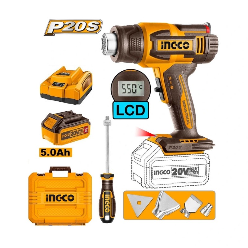 Akumulatorski pištolj za vreo vazduh SUPER INGCO HGLI20035 se isporučuje sa baterijom, punjačem i transportnim koferom. Dostiže maksimalnu temperaturu do 550° C.