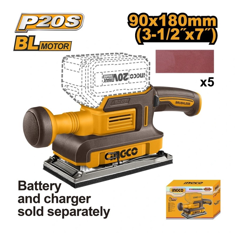 Akumulatorska vibraciona brusilica SOLO SUPER INGCO CFSLI2031 dolazi sa 5 industrijskih brusnih papira. Isporučuje se bez baterije i punjača. Garancija je 3 godine.