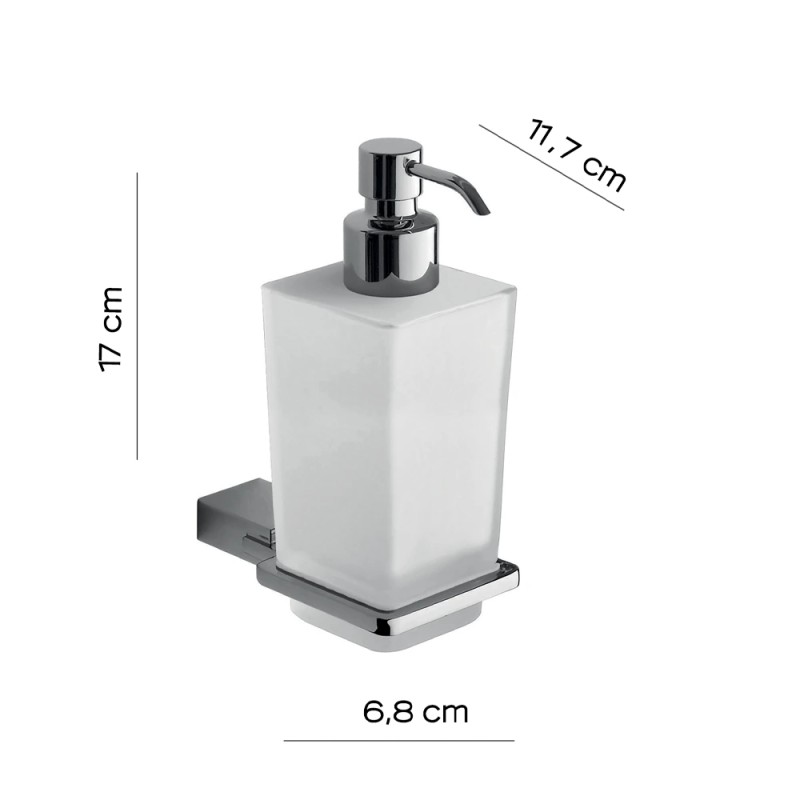 Gedy Kansas 3881 stakleni dozer za tečni sapun sa držačem od nerđajućeg čelika. Elegantan i funkcionalan dizajn koji je neophodan svakom kupatilu.