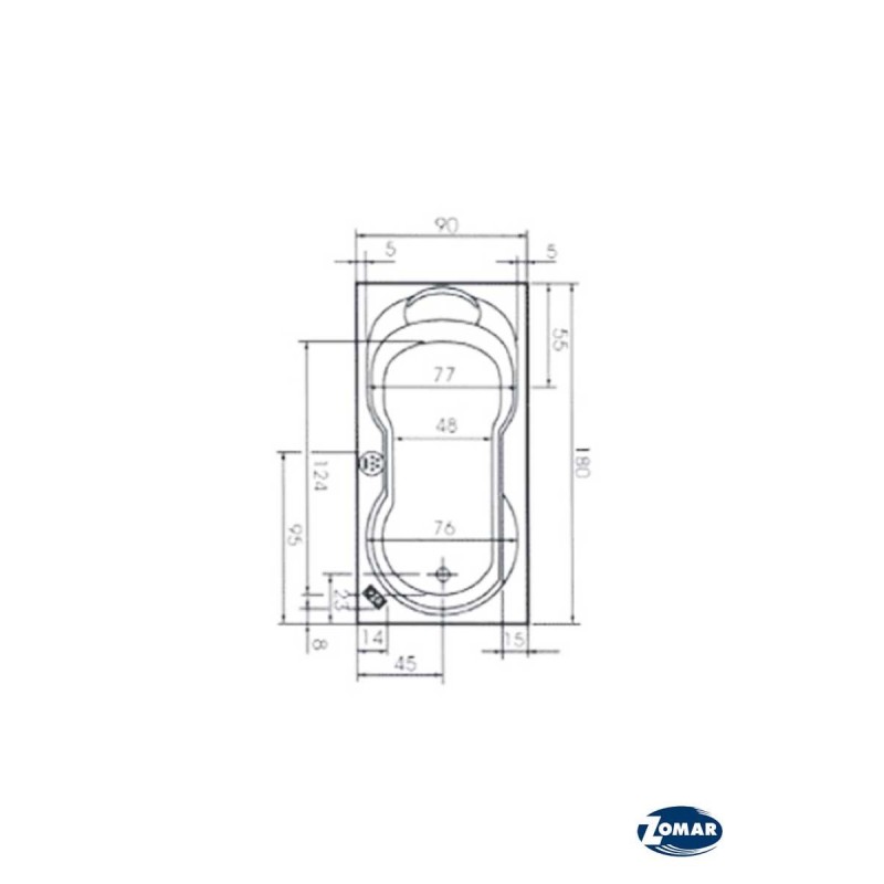 Akrilna kada Zomar Magdalena 180x90cm hidromasažna