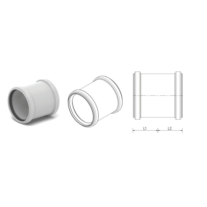 Klizna spojka REHAU RAUSILENTO je spojni element dizajniran za povezivanje dva kraja cevi istog prečnika u niskošumnim kanalizacionim sistemima. Idealna je za nove instalacije, zamene i popravke, jer omogućava pomeranje u dužini cevi i lako uklapanje u postojeći sistem – bez potrebe za sečenjem dodatnih delova ili zatezanjem cevi.